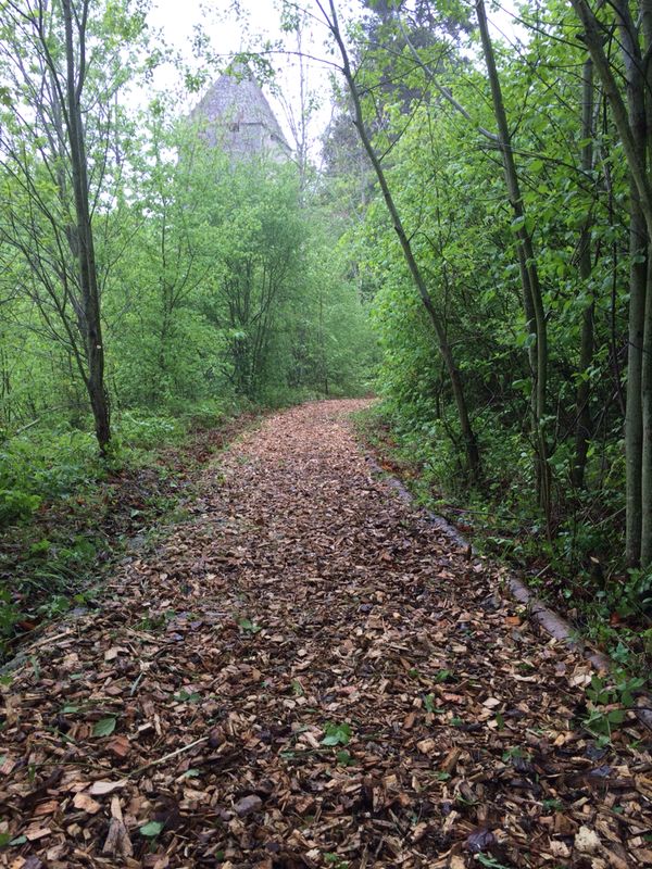 Place de parking, chemin d’accès en copeaux, carrière. Explications en route.